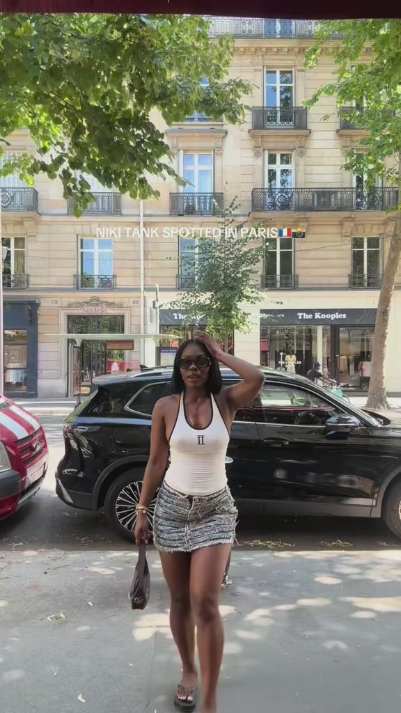Our NIKI TANK. Sleek and effortlessly cool, the Contrast Skinny Racer Tank features delicate embroidery detailing for a subtle edge. Made from the smoothest ultra-soft Modal spandex fabric, it hugs in all the right places while keeping you comfortable. Available in essential black and white—your new go-to layering piece or stand-alone statement.